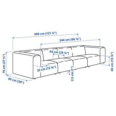 Если вам потребуется диван побольше, просто добавьте одну или две секции к уже имеющейся комбинации.