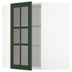Угловой навесной шкаф с полками, стекляными дв, белый/Будбин темно-зеленый 68x80 см IKEA METOD МЕТОД