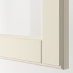 Дополните стеклянными дверцами БУДБИН белого цвета с оттенком со скошенным краем, чтобы подчеркнуть традиционную выразительность и уют интерьера.