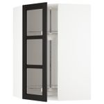 Угловой навесной шкаф с вращающейся секция, стеклянная дв, белый/Лерхюттан черная морилка 68x100 см IKEA METOD МЕТОД