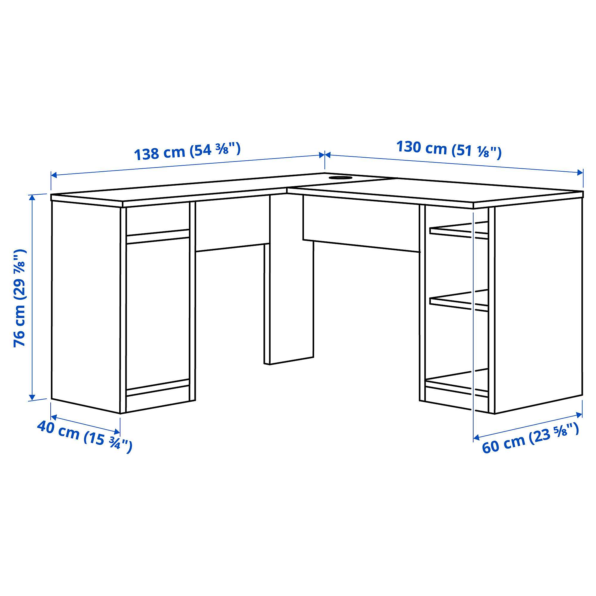Особенности «KJELLARNE угловой письменный стол, белый, 138x130 см» заявленные производителем IKЕА: