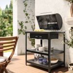Нижняя полка изготовлена из стали, поэтому на нее удобно класть горячие кухонные принадлежности для гриля.