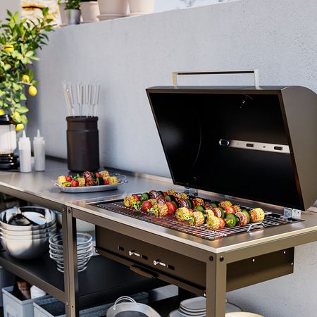 GRILLSKÄR 294.952.13 Угольный гриль со столиком, нержавеющ сталь/для сада 93/116x61 см