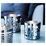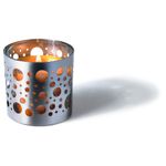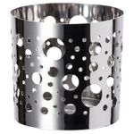 Декоративные отверстия позволяют контролировать уровень горящей свечи, а также создают уютную атмосферу. Можно использовать с ароматической свечой в стакане СИНЛИГ 7,5 см. Высота: 8 см. Нержавеющая сталь.
