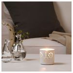 Теплый свет свечи красиво проходит через орнаментальную поверхность подсвечника. Также можно использовать с греющими свечами. Можно использовать с ароматической свечой в стакане СИНЛИГ 7,5 см. Высота: 8 см. Сталь, Полиэстерное порошковое покрытие.