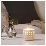 Теплый свет свечи красиво проходит через орнаментальную поверхность подсвечника. Также можно использовать с большими греющими свечами. Можно использовать с ароматической свечой в стакане СИНЛИГ 9 см. Высота: 9.5 см.