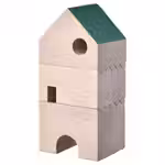 В набор входит: 1 первый этаж (длиной 7 см, шириной 6 см, высотой 5 см), 1 средний этаж (длиной 7 см, шириной 6 см, высотой 4 см) и 1 крыша (длиной 7 см, шириной 6 см, высотой 6 см).