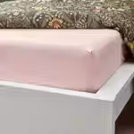 Натяжная серо-зеленая простыня ДВАЛА изготовлена из дышащей и поглощающей влагу хлопковой ткани, что обеспечивает ровную и комфортную температуру в течение всей ночи.