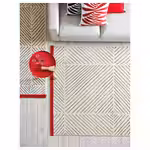 Этот ковер по размеру подходит к 2–3-местному дивану, но также подойдет для диванов других размеров в зависимости от того, как вы его положите.