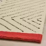 Линии образуют ромбовидный рисунок, который по краям обрамляют яркие красные полоски.
