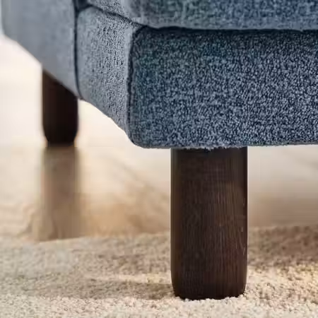Благодаря ножкам диван выглядит легким и изящным, а во время уборки под ним легко прибраться.