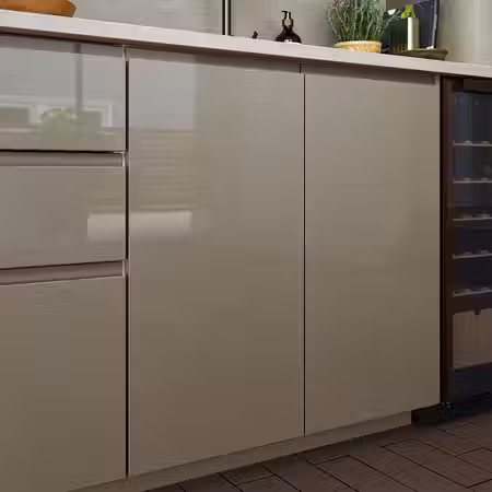 Встроенная алюминиевая ручка бежевого цвета сливается с передней поверхностью, придавая всему дизайну современный и графичный вид.