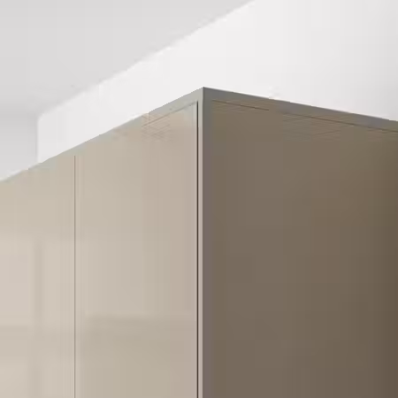 Встроенная алюминиевая ручка бежевого цвета сливается с передней поверхностью, придавая всему дизайну современный и графичный вид.