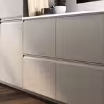 Встроенная алюминиевая ручка бежевого цвета сливается с передней поверхностью, придавая всему дизайну современный и графичный вид.