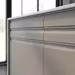 Встроенная алюминиевая ручка бежевого цвета сливается с передней поверхностью, придавая всему дизайну современный и графичный вид.