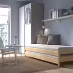 Когда эти две кровати стоят одна на другой, это односпальная кровать или диван. А по отдельности они могут служить двуспальной кроватью, угловым диваном или двумя отдельными кроватями. И их всегда можно снова объединить, чтобы освободить место