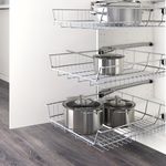 Прелесть проволочной корзины в том, что в ней видно содержимое, даже если она установлена высоко. Она идеальна для хранения текстиля, т. к. он будет отлично проветриваться, а также кастрюль и сковород, чтобы от них не оставались
