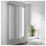 Узкие гардины – идеальное решение для оформления оконных проемов и открытых комбинаций для хранения, а также – разделения комнаты на зоны. Гардины можно отрезать до нужной длины, не подшивая. Использовать с системой для подвешивания гардин.