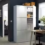 С помощью дверец вы сможете закрыть полку для хранения и придать стеллажу ИВАР новый вид. А если вы хотите придать дверцам уникальности, просто замените бамбук картиной.