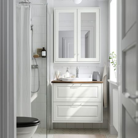 Мебель для ванной ЭНГШЁН выглядит современно и лаконично с минимумом деталей, чтобы каждый день начинался с чистоты.