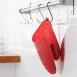 Силикон; удобно брать горячую посуду, обеспечивает теплоизоляцию.Можно мыть в посудомоечной машине; легко поддерживать в чистоте. Длина: 20 смШирина: 14 см. Силиконовый каучук