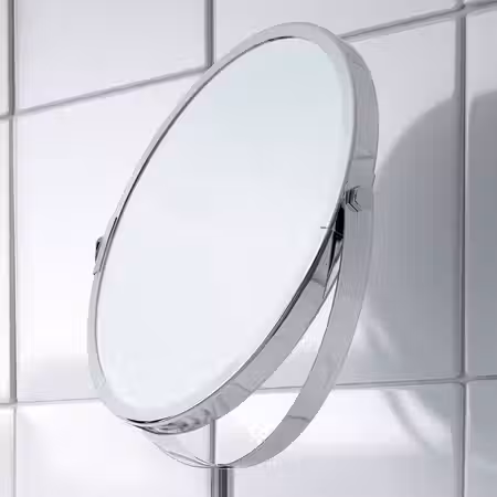 Это зеркало позволит вам видеть свое отражение под разным углом, а благодаря увеличительной стороне перед ним будет удобно бриться или наносить макияж.