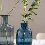 Эта ваза выдувного стекла прекрасно смотрится и с цветами, и без них.