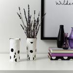 Эту вазу украшает декоративный рисунок с изображением мордочки собаки с одной стороны и хвоста с другой.В вазу можно ставить цветы или использовать ее без цветов как аксессуар для оформления интерьера.