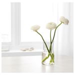 «Прозрачная ваза позволяет показать всю красоту цветов: в ней видны и листья, и стебли, а также игра света на поверхности воды. Для ваз ТИДВАТТЕН я выбрала простые лаконичные формы, но при этом сделала каждый предмет серии узнаваемым. Когда ваза наполнена водой, выпуклое дно визуально кажется больше, создавая эффект линзы».
