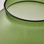 В этой круглой вазе из прозрачного зеленого стекла с мелкими пузырьками будут одинаково прекрасно смотреться элегантные розы и простой букет цветов.