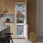 Этот встраиваемый холодильник/морозильник предназначен для установки в кухонный шкаф.