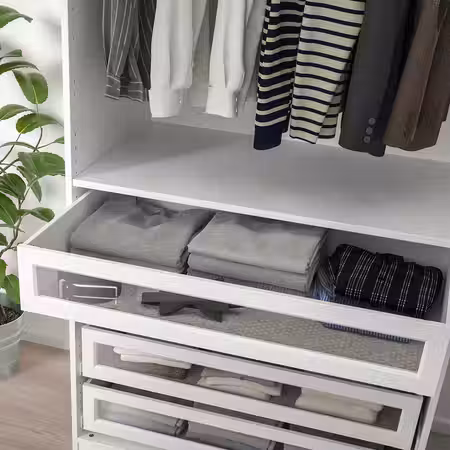 С этим ящиком с фасадом из секла в раме даст вам больше возможностей обустроить гардероб ПАКС в соответствии со своим стилем.