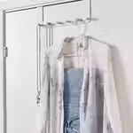 Помогает экономить место в шкафу, так как на вешалке помещается несколько пар брюк.