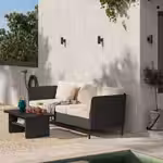 Эта пластиковая мебель выглядит как мебель из натурального ротанга, но она гораздо прочнее и идеально подходит для использования на улице.