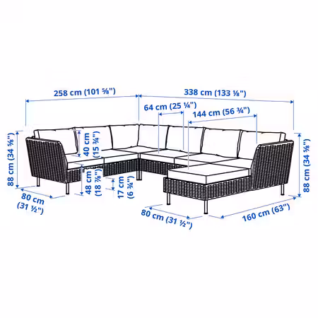Мебель лучше хранить в сухом прохладном помещении. При хранении на улице используйте водостойкий чехол. После дождя и снегопада рекомендуется удалить влагу и снег с плоских поверхностей. Следует обеспечить циркуляцию воздуха.