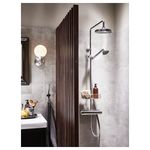 На интегрированную в смеситель полочку можно поставить шампунь и гель для душа, которым бывает так трудно найти удобное место.