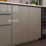Гладкие глянцевые дверцы ВОКСТОРП с интегрированными ручками придадут открытый современный облик интерьеру кухни.
