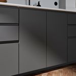 Фасады ВОКСТОРП с темно-серой матовой поверхностью и четкими линиями создают современный образ с ощущением теплоты и спокойствия.