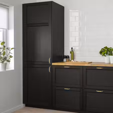Можно дополнить накладными панелями, цоколем и декоративным карнизом ВОКСТОРП под дуб.