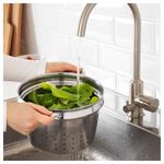 Можно также использовать как дуршлаг. Можно использовать с 4-5-литровыми кастрюлями. Диаметр: 23 см. Высота: 15 см. Объем: 5 л. Нержавеющая сталь. Материал, из которого изготовлено данное изделие, подвергается переработке.