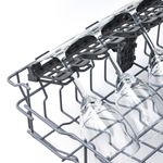 Верхняя корзина регулируется по высоте, обеспечивая место для тарелок и бокалов разного размера.