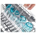 Верхняя корзина регулируется по высоте, обеспечивая место для тарелок и бокалов разного размера.