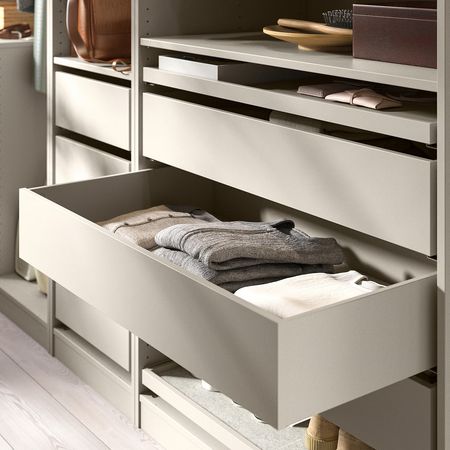 Отличное решение для хранения сложенной одежды и аксессуаров, чтобы в гардеробе ПАКС всегда был порядок.
