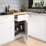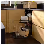 Кухонная карусель для углового шкафа позволяет максимально эффективно использовать пространство кухни, облегчает доступ и поиск нужной вещи.