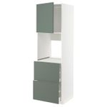 Высокий шкаф для духовки + дверца, 2 форнтальных, 2 высоких ящ, белый/Бодарп серо-зеленый 60x60x200 см IKEA METOD МЕТОД /