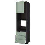 Высокий шкаф для духовки/СВЧ дверца, 3 ящика МЕТОД / ФОРВАРА, черный, Калларп светло-зеленый (60x60x220 см)