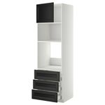 Высокий шкаф для духовки/СВЧ дверца, 3 ящика МЕТОД / МАКСИМЕРА, белый, Лаксарби черно-коричневый