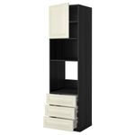 Высокий шкаф для духовки/СВЧ дверца, 3 ящика МЕТОД / МАКСИМЕРА, черный, Будбин белый с оттенком