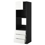 Высокий шкаф для духовки/СВЧ дверца, 3 ящика МЕТОД / МАКСИМЕРА, черный, Рингульт белый