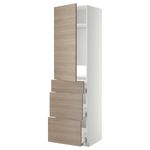 Высокий шкаф для холодильника, с дверцами, 3 ящика МЕТОД / МАКСИМЕРА, белый, Брокхульт светло-серый (60x60x220 см)
